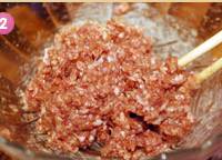 3. 边搅拌边少量加水,顺一个方向搅打上劲,做成水打馅。
