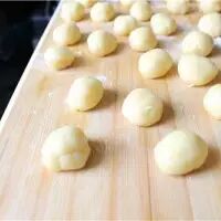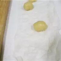 8. 准备一块湿布 将小面团分别在湿布上滚一下