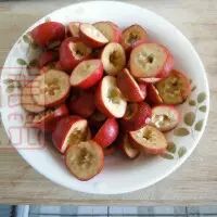 2. .奶锅中加入山楂和水,再加入半小勺盐,中火煮开,