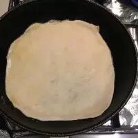 10. 从饼的侧面大气包处用筷子戳出大口子,灌入鸡蛋液。