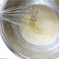 5. 将面粉及小苏打混合过筛 倒入鸡蛋糊中