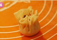 11. 擀成菊花状的面皮(后面介绍擀菊花皮),放入适量的馅料。