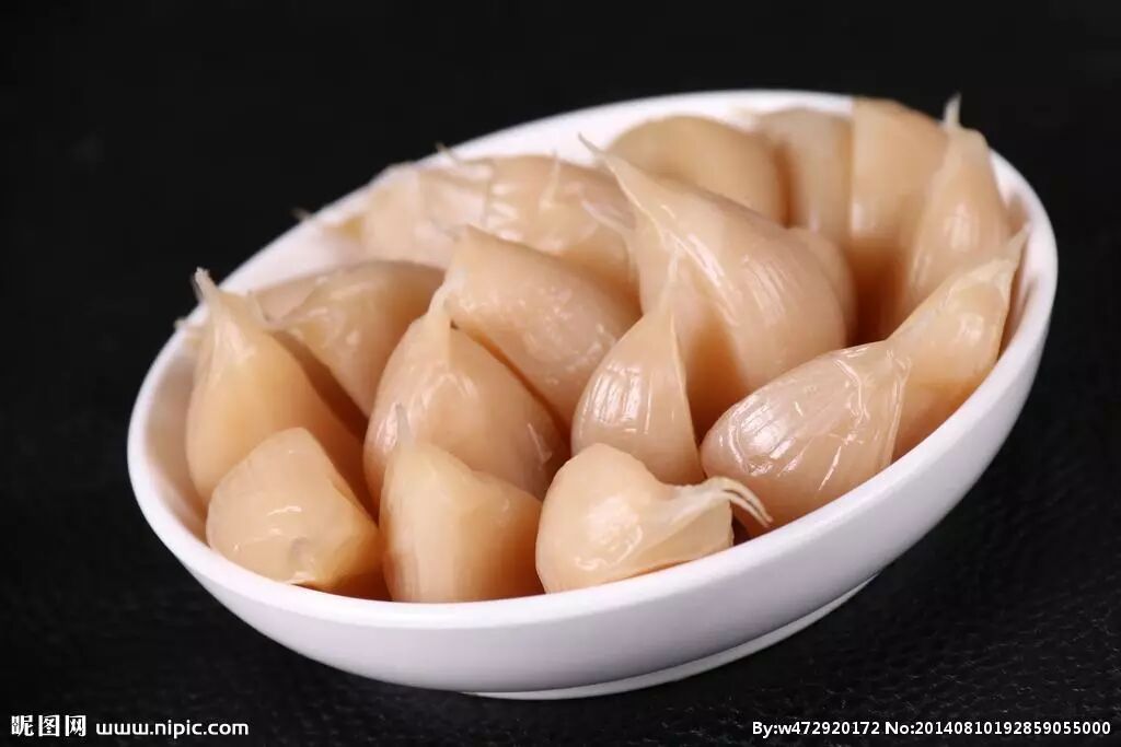 1. 新蒜切头去尾,剥开一或二层蒜皮,洗干净用清水泡24小时,放到案板上控干水分,这个步骤估计也要12小时。