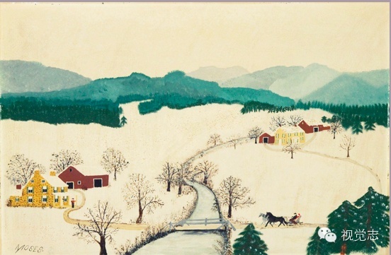 摩西的风景画能敏锐捕捉到季节、天气和时间的细微差别。
