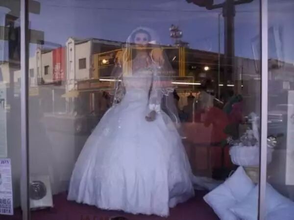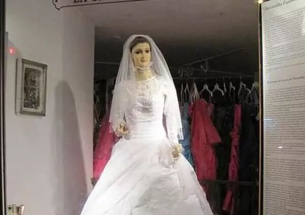 橱窗里的模特是一尊新娘模特,她身材高挑、亭亭玉立,手里捧着大团玫瑰花,看起来来像真的一样。外界人看来,也许会觉得她是富有的店主的模特招牌,但是奇瓦瓦城的当地人却流传着一种传说,称这个模特其实是前店主女儿的干尸!