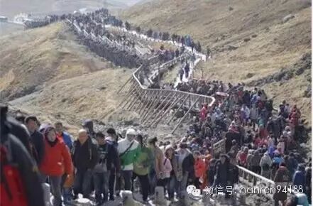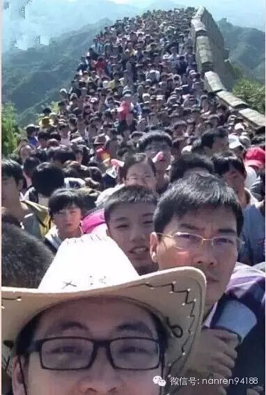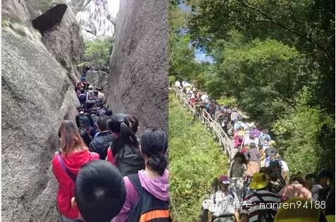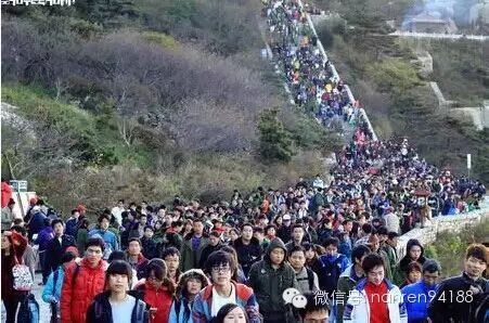 你只会看到——前方无尽的,排队大军。一行白鹭上青天,我被挤在最中间…上山看屁股,下山看人头