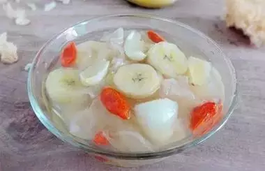 冰糖约5克,香蕉2~4根,装入碗内上锅,开锅后用文火蒸15分钟,即可食用,止咳效果很好。