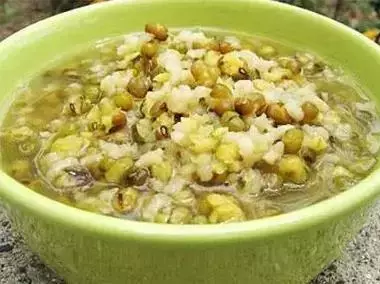 取绿豆100克,鸭梨两个煲汤喝,吃梨饮汤早吃各一次。