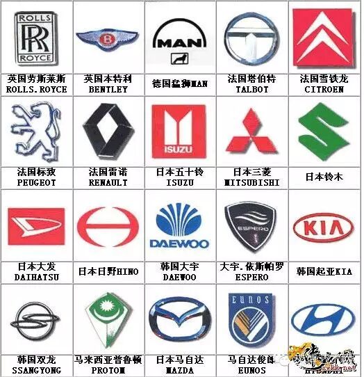 标致PEUGEOT 标致汽车公司的前身,是19世纪初标致家族皮埃尔兄弟开办的一家生产拉锯、弹簧等铁制工具的小作坊。这些铁制品的商标是一个威武的雄狮,它是公司所在地弗南修·昆蒂省的标志,有不可征服的喻意。体现了标致拉锯的三大优点:锯齿象雄狮的牙齿久经耐磨、锯身象狮子的脊梁骨富有弹性、拉锯的性能象狮子一样所向无阻。当1890年,第一辆标致汽车问世时,为表明它的高品质,公司决定仍沿用“雄狮”商标。
