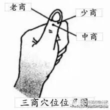 ②用另一手指点按此穴会有酸胀感。少商穴位于拇指外侧中央,与老商穴同线。左按左,右按右。本法经多年验证,效果非常好,可当即止血。