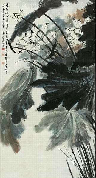 【赏析】此幅作于1944年,那时的大千已经是名满天下,笔下的荷花更具物理、物情、物态。这幅《荷花》是张大千的代表作品,落落大方,雅俗共赏,娇艳而不俗,沉着而不浮,生动而不匠。徐悲鸿曾说:"张大千的荷花,为国人脸上增色",绝非过誉之辞。