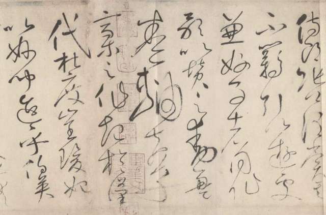 【赏析】《自叙帖》是怀素晚年草书的代表作。通篇为狂草,笔笔中锋,如锥划沙盘,纵横斜直无往不收;上下呼应如急风骤雨,可以想见当年豪情勃发,一气贯之的情景。称为中华第一草书。