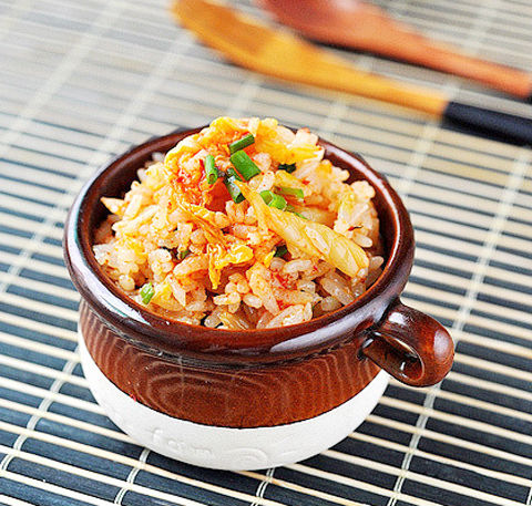 1.韩国泡菜切成细丝,猪肉丝用泡菜汁、一点淀粉拌匀腌制,葱切葱花;
