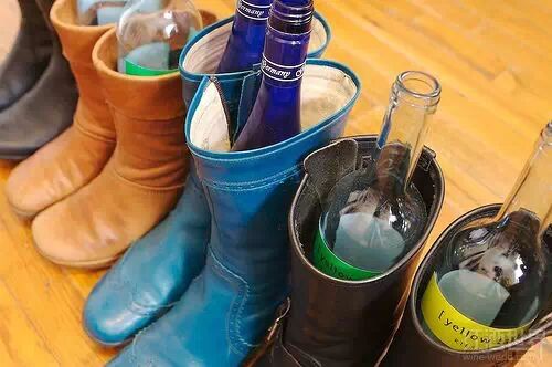 如果想要让长靴子保持直立,可以把一只空酒瓶放进去。