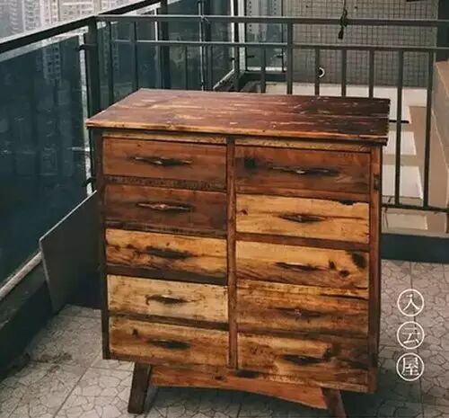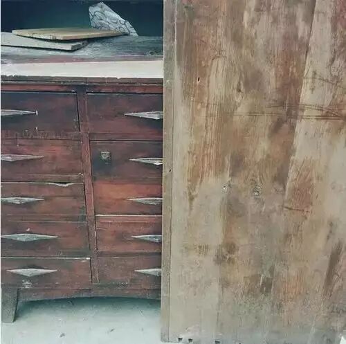 这天在一个角落的不起眼的小木椅翻新店里淘了一个老斗柜和一块柜子歇下来的侧板。经营这个翻新店的是一对很老的夫妻,专门给破旧的椅子打磨上漆。