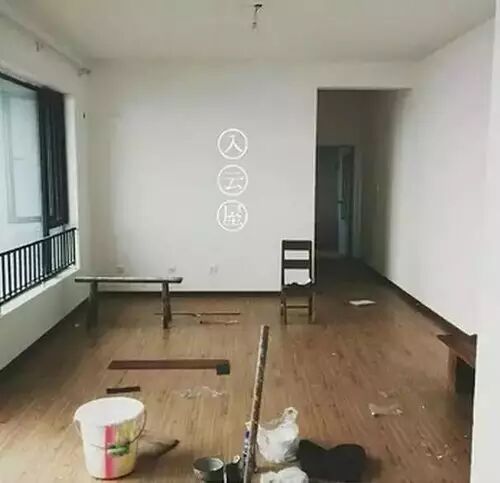 晾了一天后拆掉了塑料膜,收拾垃圾,把地板的油漆清理干净。