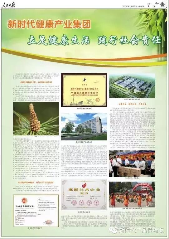 作为原料采集、科研、生产、销售、服务为一体。包含4个子公司和31个销售分公司的大型国有企业。新时代始终秉持“发展民族产业,造福人类健康”的企业宗旨,积极将健康知识和理念传播到社会各个角落,持续促进大众健康意识的提升。多年来,新时代在全国范围内广泛开展新时代健康大课堂和文化大课堂活动,普及全民健康教育和文化教育,用科学的知识引导大众树立和养成健康的生活方式。此外,新时代在经营发展过程中勇担环境保护的重任,广泛应用现代信息技术。深入贯彻环保理念,坚持绿色运营,厉行节能减排,倡导低碳经济。同时始终坚持倡导低碳环保的生活方式,开展如健康长走、环保演唱会、响应“地球一小时”、绿色办公室等公益活动,引领绿色环保新风尚。