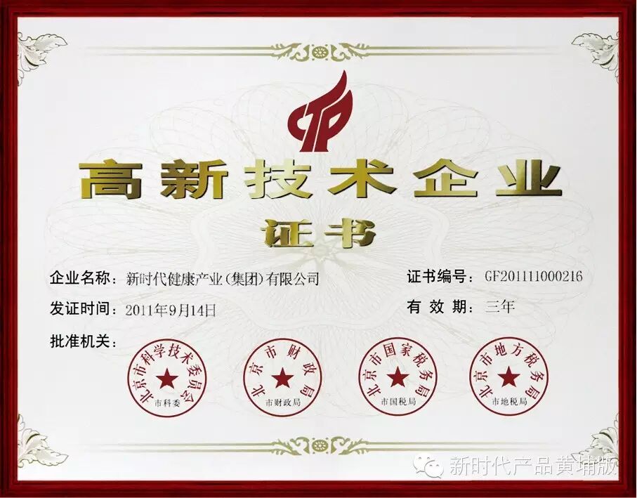 高新技术企业证书