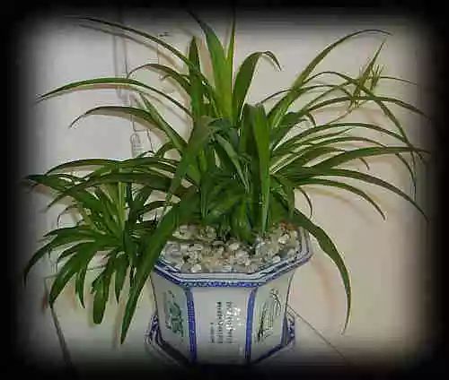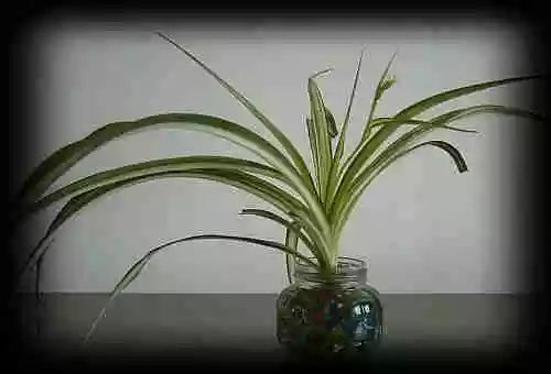 绿叶吊兰:不择土壤,对光线要求不严,有极强的吸收有毒气体的功能,有"绿色净化器"之美称。