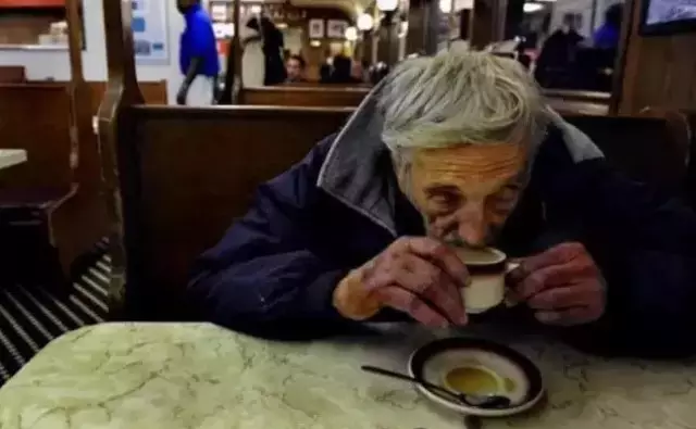 再说说那位服务生,他在为那个穷人服务时一直都是面带笑容。而那位穷人,他进来时无须降低自己的尊严讨要一杯免费的咖啡,他只需看看墙上。