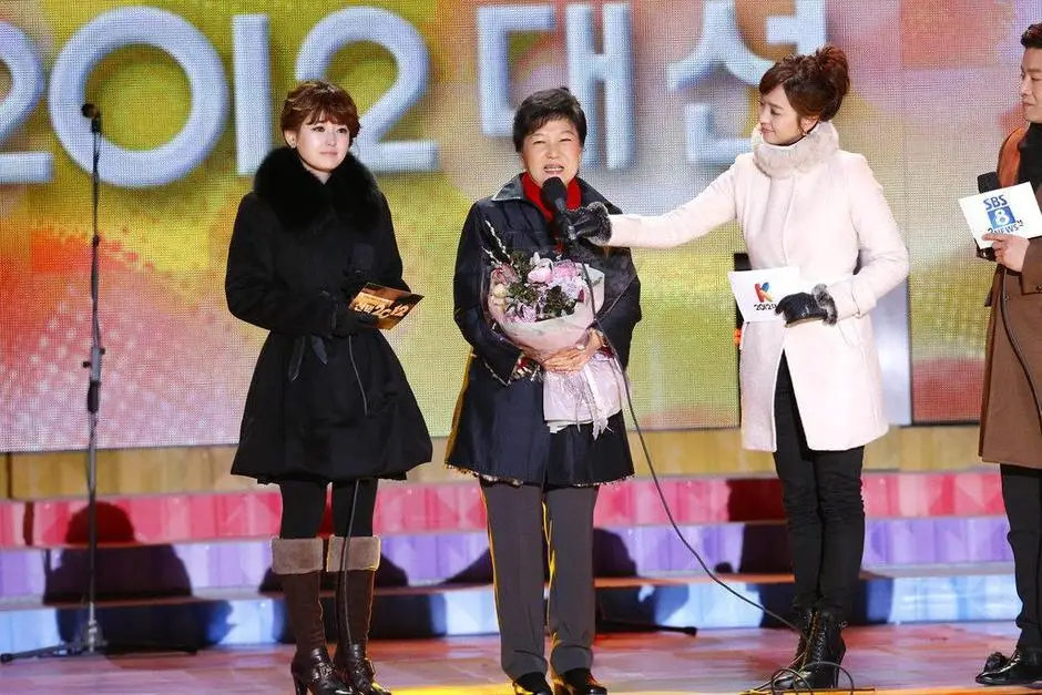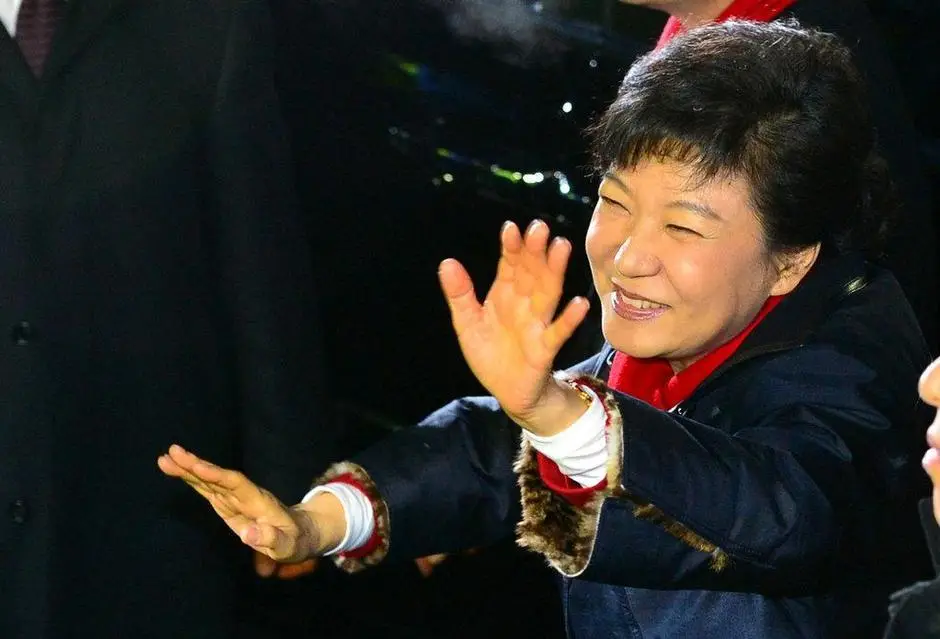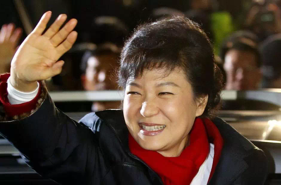 12月19日,韩国大选投票结束,朴槿蕙在党总部庆祝赢得胜利,成为韩国首位女总统。