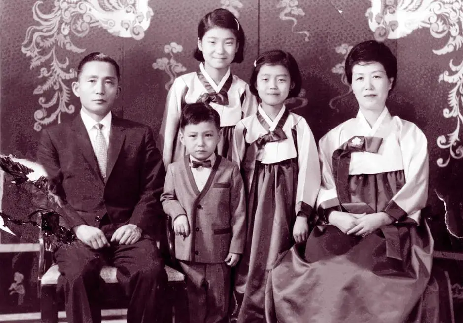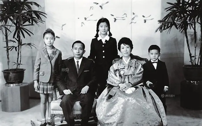 27岁的时候,她的父亲朴正熙又遇刺身亡,她被迫远离政坛,销声匿迹近20年。这是朴槿惠全家的合影照。