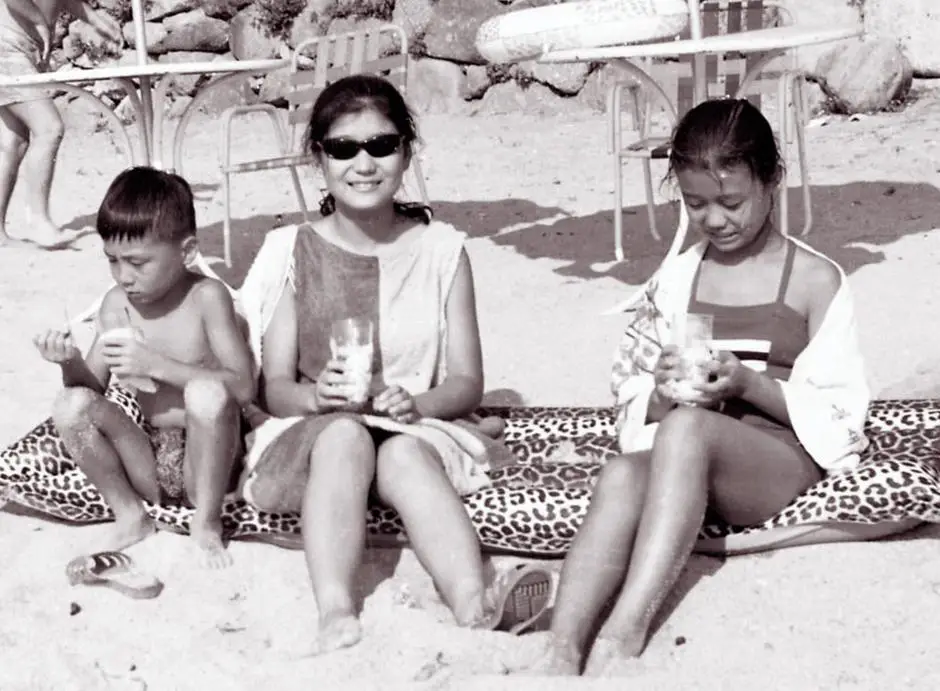1967年7月,朴槿惠是初中二年级的学生。这是她和家人在仁川市小舞衣岛休假时拍摄身穿泳装的照片。