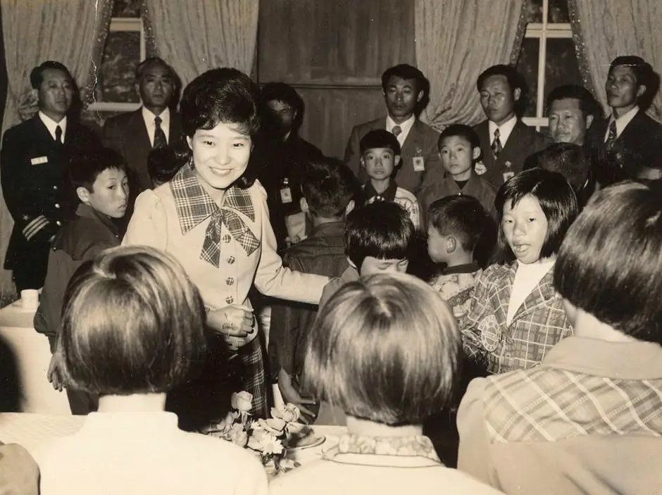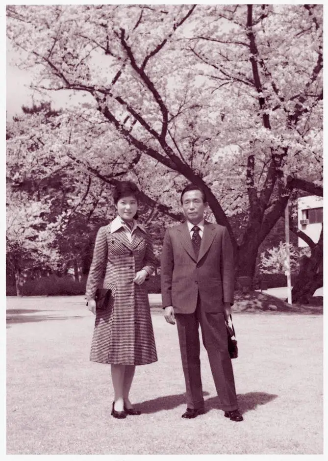 朴槿惠22岁的时候,母亲陆英修遭刺杀,她匆匆结束法国留学生涯回国,一度代行“第一夫人”部分职责。这是朴槿惠全家的合影照。