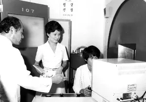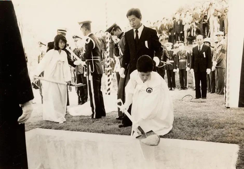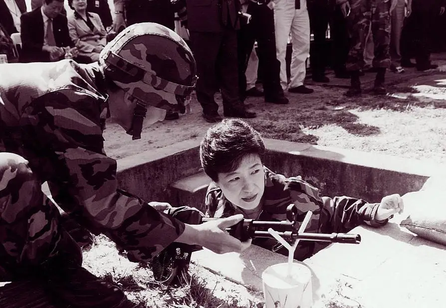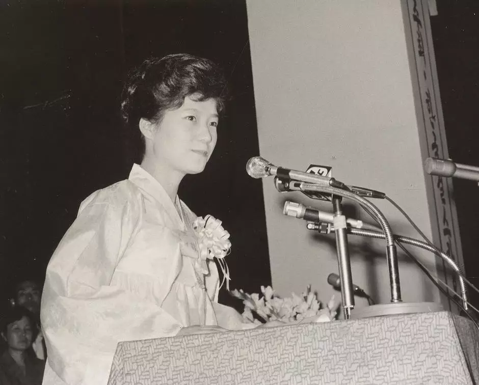 朴槿惠在母亲遇刺身亡后,代职“第一夫人”时期视察的照片。