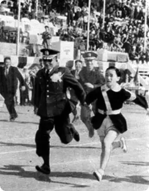 学生时代的朴槿惠和父亲朴正熙一起参加运动会。