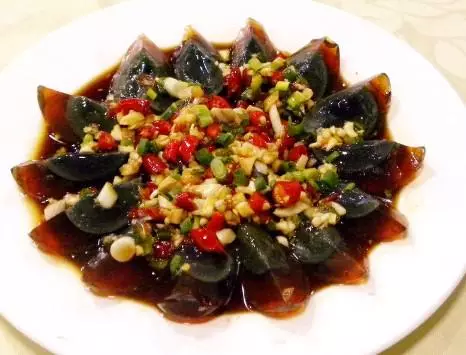 用料:皮蛋、剁椒、花生、白芝麻、葱花、香菜、红油、酱油、蒜蓉