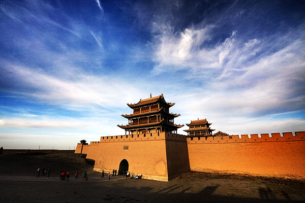 来到嘉峪关的游客大部分都是冲着关城和长城第一墩来的,这里是明代万里长城西端起点,也是古代“丝绸之路”的交通要冲。在明朝,跨过这道门就是出国了。北京的长城是灰色的,这里的长城却是彻底的土黄色。城楼牌匾上书写的“天下第一雄关”笔道苍劲有力。站在关城上远眺,一片辽阔苍凉。
