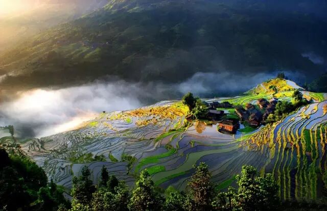 依山傍水、风景秀丽的村寨,飞檐翘角、古朴坚固的鼓楼,勤劳善良、能歌善舞的人民,盛大隆重、热情欢乐的节日,圣洁耀眼、雍容华贵的银饰,精描细绣、风情万种的民族服饰,嘹亮悦耳、情深意长的歌子,饱经沧桑却依然静默屹立的古城,还有清秀的山,灵动的水……这里的一切是那么地令人沉醉。