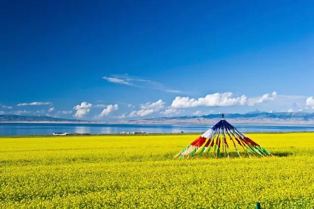 青海湖位于西宁以西大约130公里处,是中国最大的内陆高原湖泊,7-8月是青海湖最美的时候,日平均气温只有15度左右,环湖千亩油菜花开得最茂盛,金灿的油菜花镶嵌在湛蓝的青海湖岸上,高山牧场的野花五彩缤纷,如绸似锦,数不尽的牛羊膘肥体壮,点缀其间;这里栖息着10万余只各类候鸟,每年4月,来自南方和东南亚等地的班头雁、棕头鸥、赤麻鸭、鸬鹚等侯鸟在这里繁衍生息,此起彼伏,场面壮观,是青海湖一大奇观。