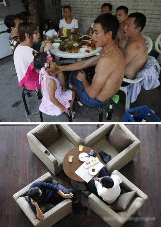 (下)在北京一家餐厅吃晚餐的客人,用餐价格约为60-80美元(约380-500元人民币)。