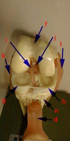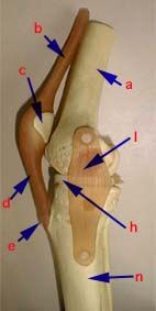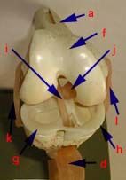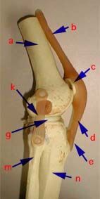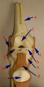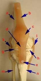 g)外侧半月板 h)内侧半月板 i)前十字韧帯 j)后十字韧帯 k)外侧侧副韧帯