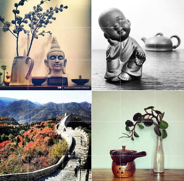 部分手机拍照时,可以显示“井”字格,这是最容易掌握的黄金分割构图工具。