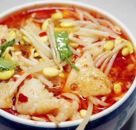 3.锅里加油热了后爆香花椒,加2大少豆瓣酱炒香了加姜蒜炒,加热水加点盐生抽煮开后下鱼片煮熟了后,将鱼片和汤倒入大碗里。将花椒蒜末辣椒粉撒入碗里。找干净的锅多到点油烧热浇上去,搅拌下开吃!