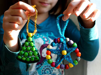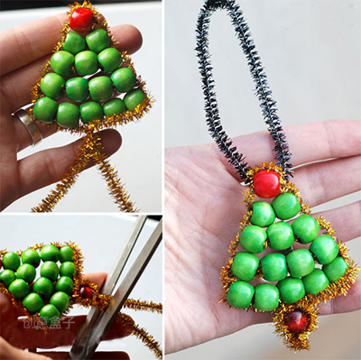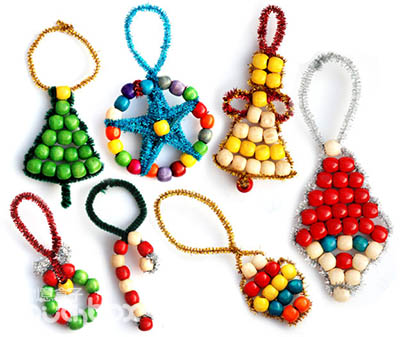 21. 彩色木珠与绒铁丝的巧妙结合,美丽的圣诞树挂饰闪亮登场