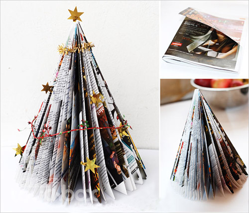 7. 漂亮的包装纸,用铅笔卷成小圆筒,做出来的圣诞树是立体的