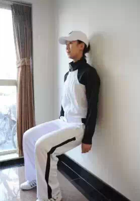 你只需靠墙半蹲保持这个动作就可以,坚持,坚持,再坚持。每天练习10-20分钟,可以分多次完成。