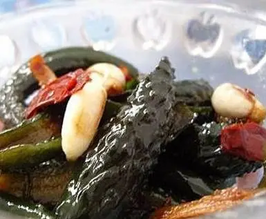 先将食盐、蒜、生姜、花椒、大料、白糖放入凉开水中泡20天后备用;将豆角去筋后洗净沥干,放入料汤内,同时加入白酒,密封坛口,10天即为成品。