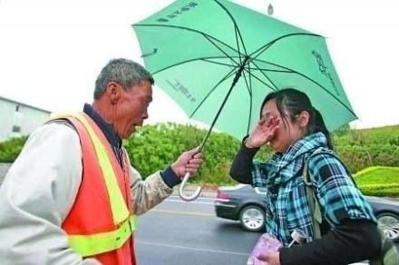 03.【 一位环卫工捡到一个女大学生的钱包,在雨中苦等2小时,终于等来了失主,女大学生赶到后,感动得直掉眼泪。见她还淋着雨,张国顺撑起雨伞上前为她遮雨,而他自己却一直被雨淋着。这是在烟台市区月亮湾景区的公交车站点发生的很感人的一幕。祝福像这样的好心人,都能够一生平安】