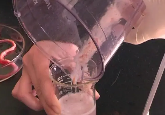 来吧,实验走起! 黄鳝的这些寄生虫能被我们的胃液杀死吗? 就在那个农贸市场,实验君一口气买了10斤黄鳝,老板说都是养殖的。 首先我要模拟一个黄鳝被咀嚼后进入胃里再被胃液消化的过程。 先把黄鳝的肌肉和内脏分别加入清水,然后用搅拌机充分打碎,(这是模拟咀嚼的过程)然后用跟人体胃液的成分几乎一样的消化液(包含胃蛋白酶、氯化钠、稀盐酸和水)和黄鳝肉渣与内脏渣充分融合,模拟胃液的消化。 看,这就是“人造胃液”中的黄鳝肉,恶心吧。既然做实验嘛,一定要科学。 接下来实验君来模拟黄鳝在我们胃里被消化的过程。 有把这杯东西放到37度(与人体温度相同)的恒温箱里孵育4个小时,(因为一般来说经过4个小时的消化,人体胃液能把大部分微生物杀死)。为了模拟胃部的蠕动,每隔10分钟就把温箱里的消化液拿出来搅拌一次, 4小时后黄鳝肉和内脏的被消化完成了这样: 那这杯粉红色液体里到底有没有寄生虫呢? 实验君把它放在解剖镜下观察。我勒个苍天!一大片蠕动的虫子!透明的表皮,黄色和白色的身体,有的展开身子像蚯蚓一样游动,有的盘起来像螺蛳一样!可以想象这些家伙在我们的胃里会是什么样! 颚口线虫 医生说,从黄鳝沉渣里挑出来的叫做颚口线虫,用肉眼看非常小,最长的可能也就几毫米,实验人员在我们买的10斤黄鳝中,找到了250条颚口线虫!而这些只是颚口线虫的幼虫,它们在黄鳝体内还会长大! 下面这只“未成熟”成虫看起来就明显大了几倍,褐色的身体,头还在转动。 看到了吗?即使经过咀嚼、胃液消化4小时后,这种虫子仍然能在你体内存活! 那么,感染这种虫子后有什么症状呢? 杭州就有位女患者就因为吃黄鳝,染上了颚口线虫。这些红色的线条是虫子在人体皮肤下游走的痕迹。 黄鳝体内的寄生虫对人体有多大危害? 实验君请教了全国最顶尖的寄生虫病研究机构之一浙江省医学科学院寄生虫病研究所。 专家说颚口线虫病是最危险的寄生虫病之一,它的潜伏期很长,几年甚至十几年虫子都能存活,而且不停地在人体内游走。游到哪里,就会对哪里的组织器官带来损伤。 除了骨头以外,基本上所有的组织器官它都能去,如大脑、眼睛、心脏、肺等等。一旦钻进人的大脑,那就非常危险了,可能会剧烈的头痛、癫痫、昏厥,甚至死亡。 如果已经感染了,治疗方法是:服用阿苯哒唑和伊维菌素。但最大的危险是误诊。 另外,颚口线虫也存在于黑鱼、汪刺鱼、鲶鱼、鳗鱼里。 青蛙、泥鳅这些动物肚里也有寄生虫,因为这些动物都以食小虫为生,所以体内很容易寄生各种细虫。 还有,并非高价的进口黄鳝就没有危险,上海检验检疫局曾对外披露,该局连续从9批次印度尼西亚和菲律宾进口黄鳝中检出颚口线虫。 ============================================================================================= 若本文对您的内心有所触动,恳请随喜转发,这样可以让更多人受益,很多人会因为您而改变!