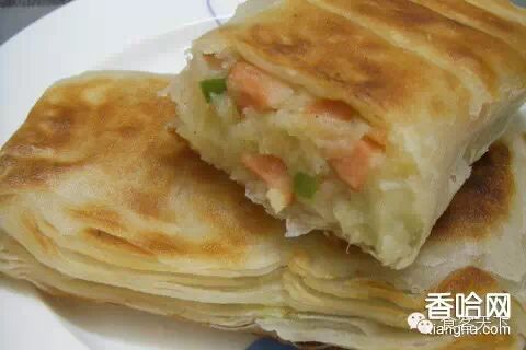 做法:1)面粉加入适量的水,和成较软的面团,面团的软硬程度如图,轻轻能拉长面团。2)面团盖湿布饧10分钟左右,放置在撒有面粉的面板上,分割成小份备用。3)将分割好的面团,用擀杖擀成薄薄的饼皮。4)放入少许香辣粉和食用油。5)将香辣粉和食用油涂抹均匀,然后像折纸扇一般,将面皮折叠起来。6)将折叠好的面皮从一端开始,慢慢卷起,将最后的尾巴塞进面团里即可。7)将卷好的面团粘面粉,按扁。8)擀成大小相当的饼胚备用。9)煎锅放火上,放入食用油烧至温热。 下入擀好的饼胚烙制。10)一面煎至金黄,翻面煎另一面。11)翻面煎的时候,让锅铲不停的敲打饼皮,让整个饼变的酥松。
