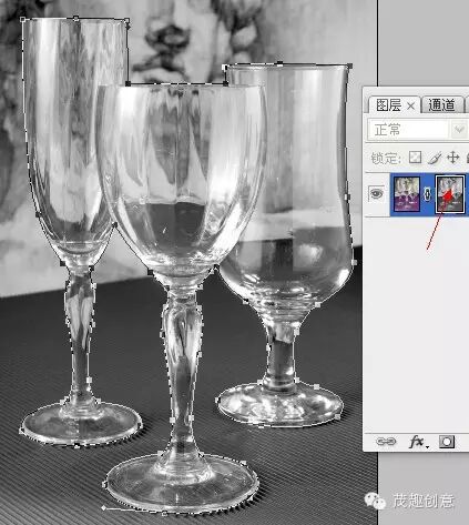 ►玻璃制品其实跟冰块没什么区别的,但是下面的图仔细观察就会发现,桌布和背景的颜色都融到杯子里去了,这是难点: