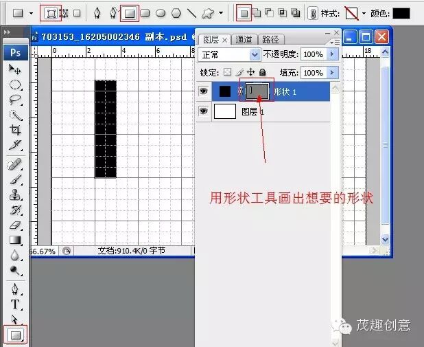 ►按alt+l+v+r快捷键为图层添加矢量蒙版:前景色决定你矢量形状的颜色,颜色自选