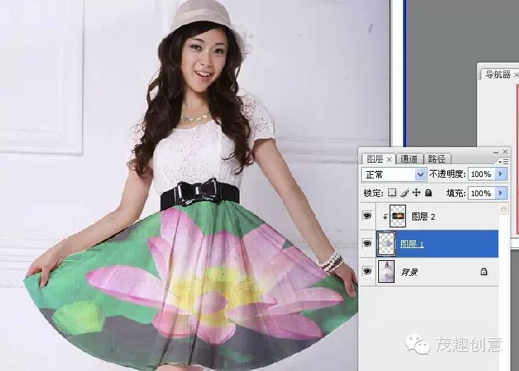 ►我想把这个荷花图案弄到这个mm的衣服上:这里我们就用得到剪切蒙版。