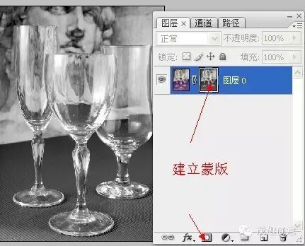 ►然后在ctrl+v,把刚才我们复制的图层粘贴到图层蒙版中:现在可以看到,图层蒙版中有了一个和图层一样的图层