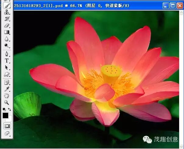 ►打开素材图片,我们现在来用快速蒙版来扣一个荷花: